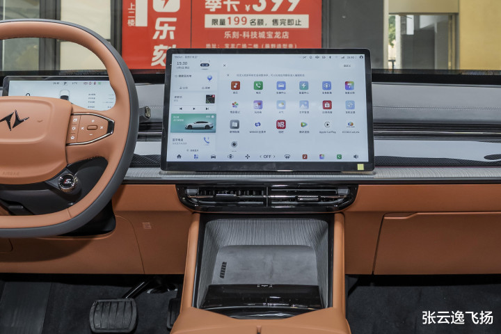 深蓝L07:采用了新能源车常用的设计元素,比如大面积的哑光材料和电子怀档。虽然整体风格简约,但同样非常美观,直线线条的设计使得打理起来也会更轻松一些。新车提供了黑调-时空探索、白调-海洋漂浮、橙调-落日飞行,三种配色可选。前排没有配备全液晶仪表,但是给到了AR-HUD抬头显示功能,配备了15.6英寸的向日葵屏,车机芯片同样是高通骁龙8155,支持HUAWEI HiCar,50W无线充电,全车无钥匙进入。座椅设计舒适,主驾驶支持电动调节、前后移动、靠背角度和高低调节等,副驾驶给到了零重力座椅,支持前后移动、靠背调节和高低调节等,坐累了的时候可以把腿托打开减轻疲劳感。基本的配置前后排扶手和后排杯架也有给到。后排座椅支持40:60放倒,放倒之后后备箱能从原来的543L提升至1250L。此外还配备了一个70L的前备箱,空间搭配更丰富。
